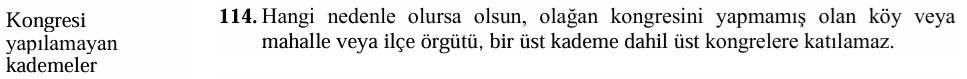 Alt kademe kongreleri tamamlanmadan üst kongreye geçilemez ve olağan kongresini yapmamış örgütler üst kongrelere katılamaz.