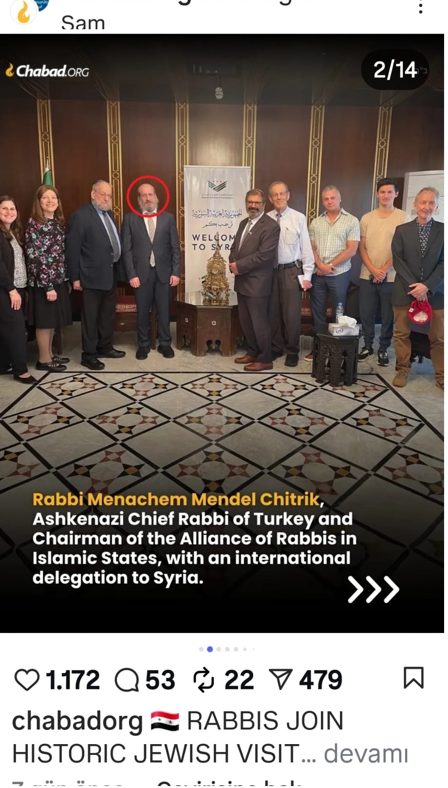 Yasal dayanağı olmayan İslam Devletleri Hahamları İttifakı Başkanı Mendy Chitrik de, Suriye’yi ziyaret eden heyet üyelerinin, "yeni Suriye"ye el uzatmak istediklerini söylüyor.(bkz)