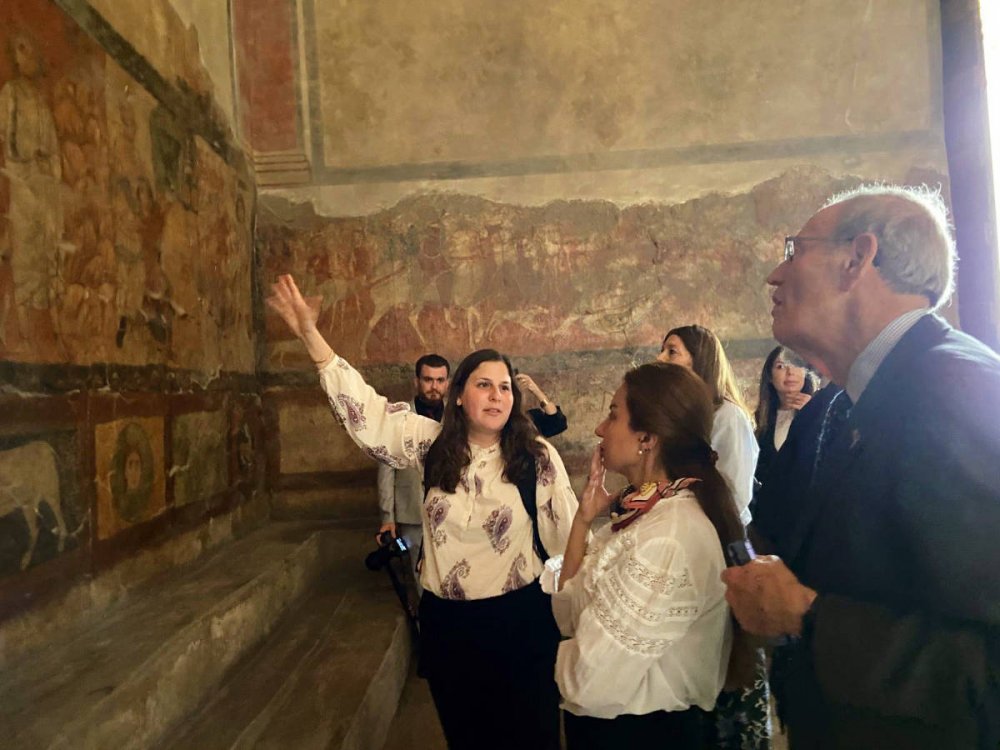 Fotoğraf: Mendy Chitrik'in Suriye'ye yaptığı ziyaret sırasında Şam Ulusal Müzesi'ndeki Dura-Europos Sinagogu'ndaki resimleri inceliyor.