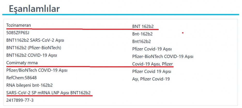 Bakanlığın mahkemeye sunduğu belgelerde yer alan, Tozinameran ve Comirnaty kavramlarına açıklık getirilmesi gerekmektedir. Zira ancak bu şekilde, söz konusu mRNA sıvılarıyla ne yapıldığı ve hangi kapsamda kullanıldığı daha net anlaşılabilecektir.