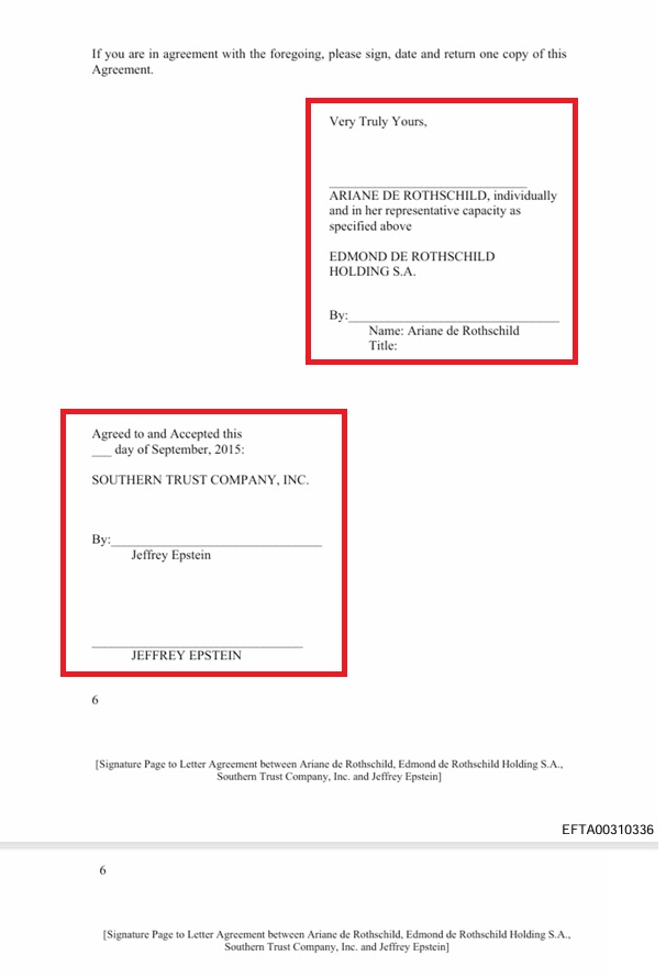 Yine Jeffrey Epstein'ın şirketi (Southern Trust Company Inc.) Rothschild Group ile risk analizi ve algoritma hizmetleri sunmak üzere 5 Ekim 2015 tarihinde çok bilinen, o 25 milyon dolarlık bir anlaşmayı imzalıyor.