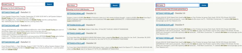 Belgelerde ise Bill Gates 2.532, Elon Musk 1.088 ve Trump’un adı daha eski yıllara (1987) dayanan tanışıklığa rağmen 1.500 kez yer aldı.