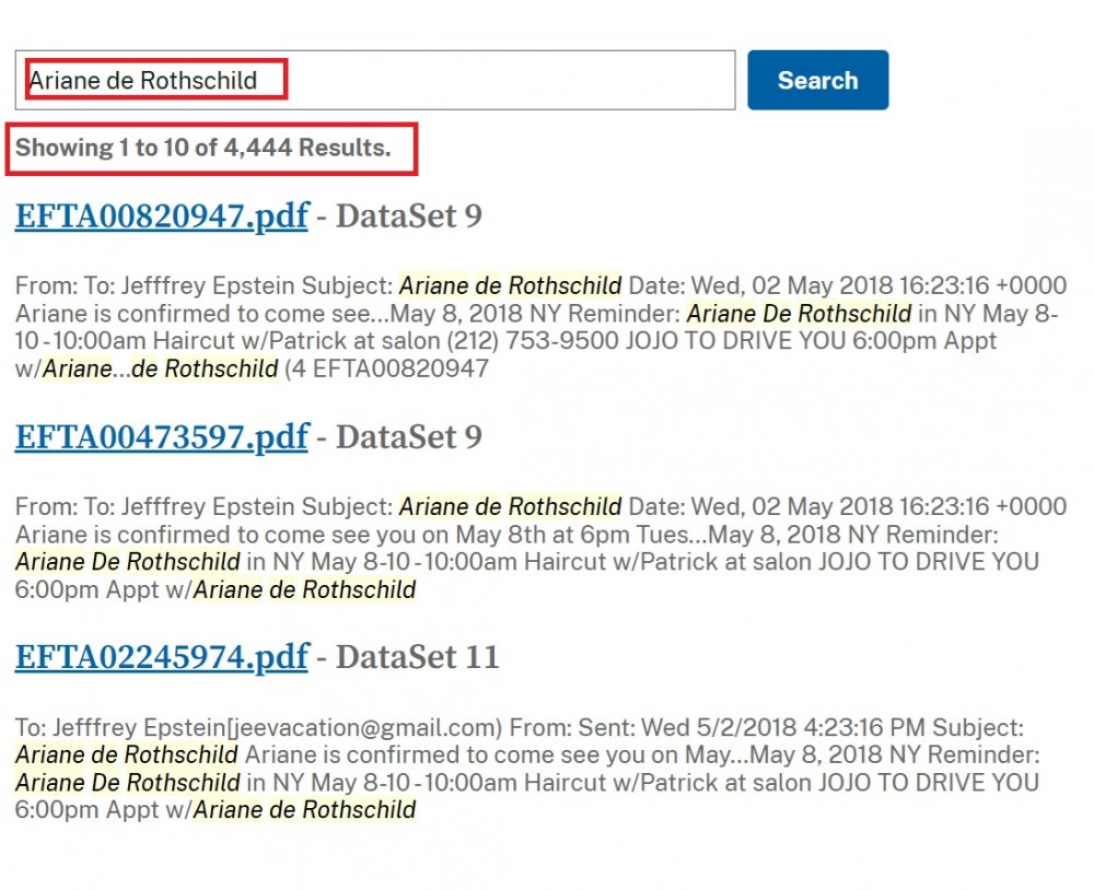 EPSTEİN DOSYASINDA, ARİANE DE ROTHSCHİLD 4.444 KEZ YER ALMIŞ