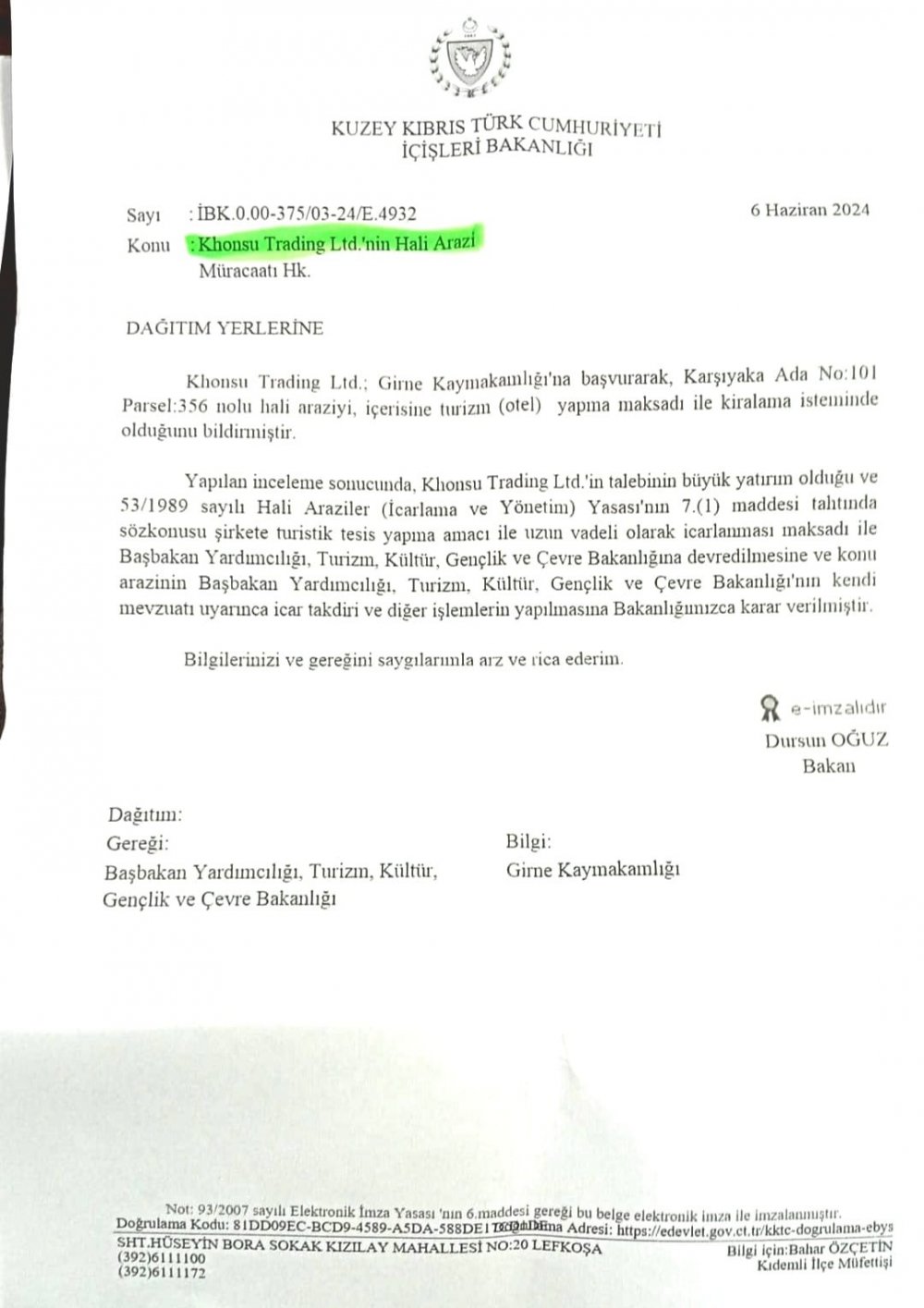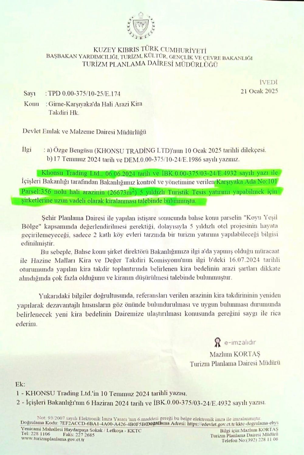 Hemen onun yanında, Başsavcı Sarper Altıncık'ın eşi Sinem Altıncık ve 2 kardeşine ait 30 dönüm Türk malı arazi var.