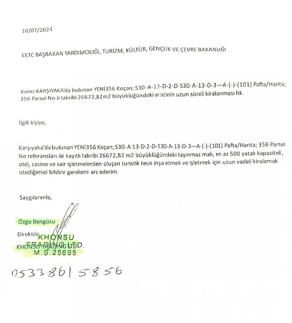 2023'de "TURİSTİK YATIRIM YAPMAK " amacıyla bu 30 dönümün kendilerine kiralanması için müracaat yaptılar. Başvuruları kabul edildi... İlgilenen kişilerle görüşmeler yapıldı. Ancak son anda " yol sorunu olduğu için" durum şimdilik donduruldu. Yol sorunu çözülürse ve alıcı çıkarsa, 60 dönüm olarak 25-30 milyon sterline satılabilecek...