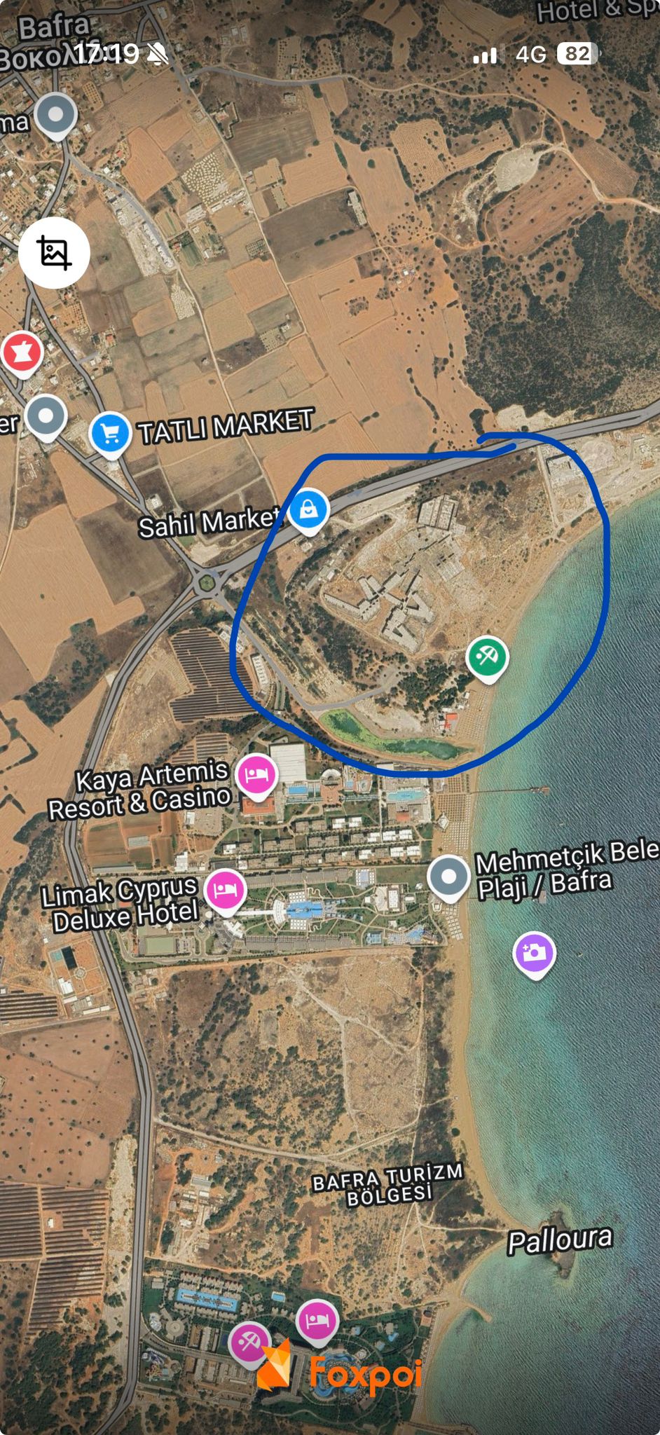 Sadece kendi arazisini satsa 4-5 milyon sterlin ederdi. Sahildeki devlet arazisini ekleyince 25 milyon sterline çıkıyor...( uydu haritası aşağıda)