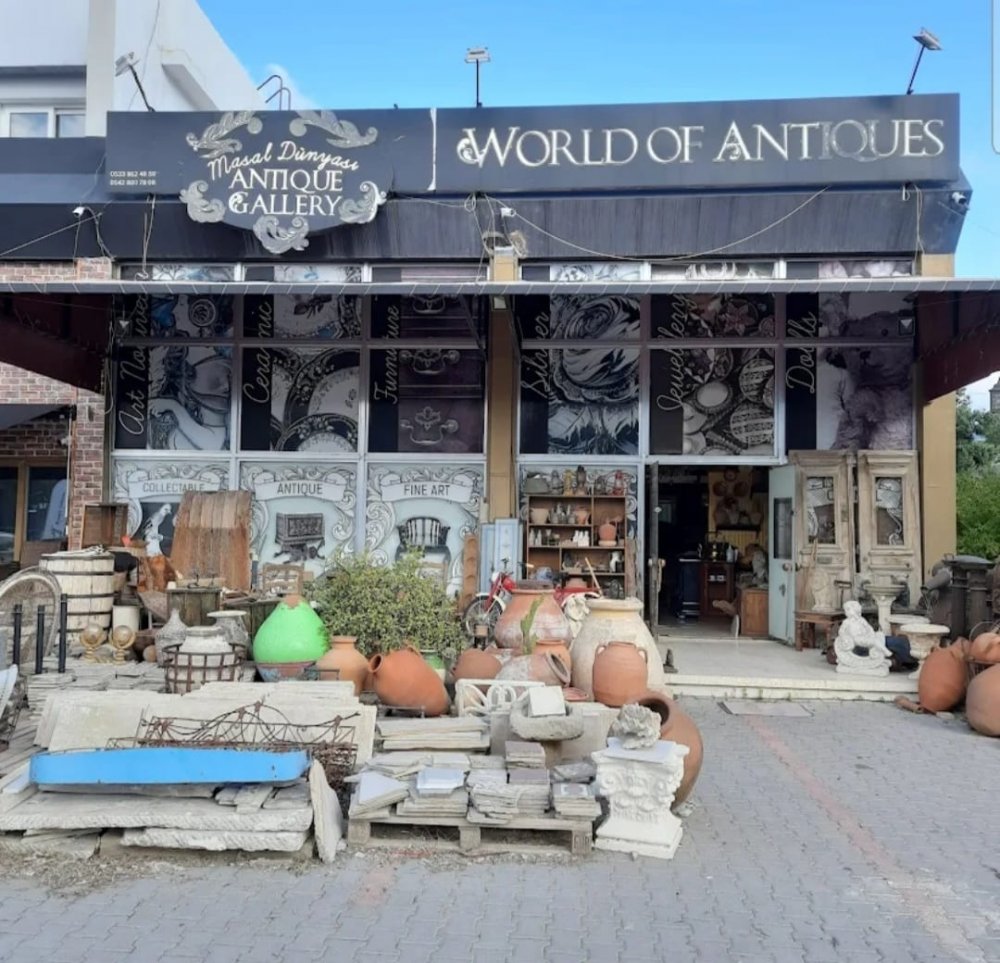 ALİ ÜSTEL, MERİT KRİSTAL HOTEL YOLUNDA, KENDİSİNE AİT, 2 MİLYON STERLİN DEĞERİNDEKİ ARAZİ ÜZERİNDE, MİLYONLARCA STERLİN HARCAYARAK 800-900 METREKARELİK DEVASA BİR ANTİKA DÜKKANI AÇTI.